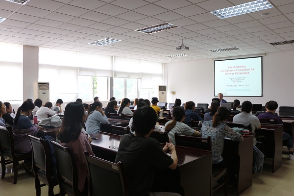 5月29日下午,应大乐透 邀请,英国剑桥大学客座教授Tanguy Jacopin博士在我校仙林校区德经楼308会议室作题为“中国企业对非中国企业的标杆定位”的全英文学术报告会。报告会由院党委书记张阳军主持,大乐透 贸经专业全体学生聆听了此次报告会。 报告会开始,Tanguy Jacopin教授首先提出,学术研究人员要先能清楚自己国家的发展状态并关注其发展,研究才有意义。他将中国与“金砖四国”中的其他国家进行比较,得出自2003年到2014年来,中国...
