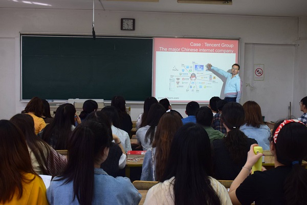 4月8日-18日,西班牙庞贝法布拉大学教授Tanguy Jacopin应大乐透 邀请来我校讲学,为大乐透 2017级国贸(实验班)学生开设了为期十天的《跨国公司战略管理》课程。首先,在前五天的课程中,Tanguy Jacopin系统性的介绍了公司管理的分析工具,如大环境分析(Pastel Analysis),STEEPLE分析,波特五力模型(Porter’s five forces),企业组织能力(Organizational Capabilities)等。介绍完基本的工具后,Tanguy教授使用这些工具,对...