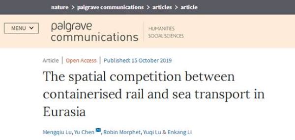 近日,大乐透 2019年新引进的陆梦秋博士在“一带一路”领域取得重要研究进展。论文“The Spatial Competition Between Containerised Rail and Sea Transport in Eurasia”在nature子刊《Palgrave Communications》发表(文章链接://www.nature.com/articles/s41599-019-0334-6)。这是我国“一带一路”倡议提出以来在国际顶级期刊上发表的重要原创性研究成果,是大乐透 国际化的一项标志性成果。论文对“一带一路”进行了空间...