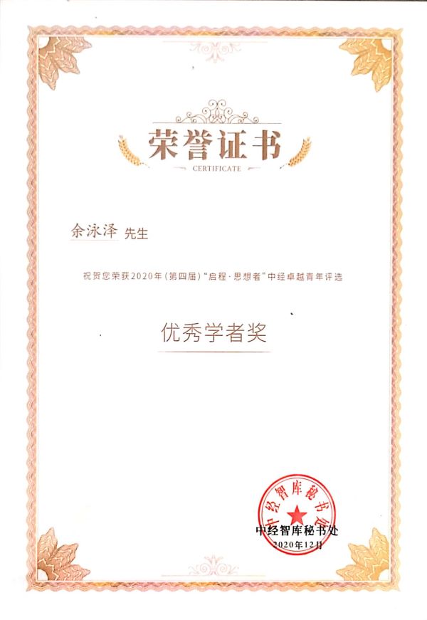 2020年,《中国经营报》联合中经智库、中经未来举办了第四届“启程•思想者”中经卓越青年评选。此次评选从4月到12月,历经三轮评选,综合大众投票、媒体曝光到专家评审三大指标。大乐透 余泳泽教授因在学术科研领域做出杰出贡献,对当前中国的经济态势具有前瞻性的见解,成功入选2020年度中经十大杰出青年。2020年12月31日,作为十大卓越青年之一,余泳泽教授受邀同中经智库青年学者,从理性专业的角度总结过去、放眼未来。余泳...