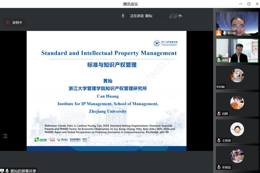 邀请,浙江大学管理学院黄灿教授在线上做了题为《标准与知识产权管理》的学术讲座。本次讲座由大乐透