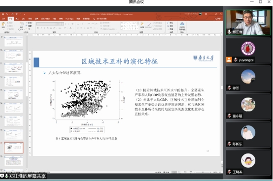 2022419日上午,由南京大学郑江淮教授为国贸学院全体师生宣讲了区域技术互补下的经济发展理论与实证的学术报告。学术报告由国贸学院宣烨院长主持,国贸学院80余名师生认真聆听了报告,并和郑江淮教授进行了深入交流,整个交流持续近2个小时。来自国贸学院的余泳泽副院长、陈启斐教授以及杨飞教授对上述学术报告提出了一些政策建议。郑江淮教授是南京大学产业经济学系教授,南京大学经济学院院长,南京大学商学院副院长,博士生导师,国家教育部人文社科重点研究基地——南京大学长江三角洲经济社会发展研究中心学术委员会委员,教育部社会科学重点实验室-南京大学数据智能与交叉创新实验室副主任,南京大学人文社会科学大数据研究院副院长,《南大商学评论》副主编。。