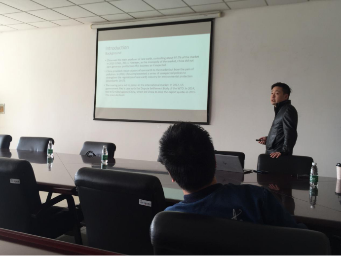 报告会上,胡教授围绕着稀土出口的政策管制是如何影响下游产业,下游产业该如何获得竞争优势等问题,从研究背景、政策回顾、数据来源及处理、稀土资源政策对其价格和产量的影响以及对下游企业的影响这一思路展开讨论,并进一步讨论了政策的长期效应和社会福利效应,并通过实证分析来理清下游企业如何从出口控制政策中获益、不同企业之间在政策获益上是否有差异以及政策的长期和短期效益。胡教授认为稀土资源的出口管控政策无疑会刺激稀土资源的出口经济总量,并且这一增长是由于价格变动导致的而非数量变动。