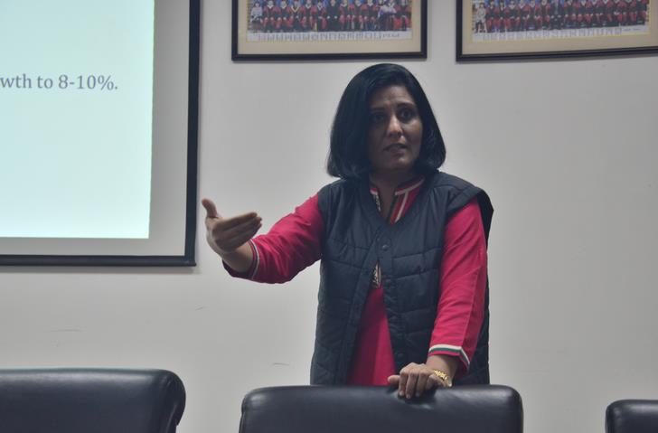 讲座中,PareshaSinha博士从理解印度经济、在印度的商业机会、文化差异问题、成功的销售策略等角度进行阐述。她讲述了2000年以来印度GDP组成成分比例的变化。随后,她分析了印度经济竞争的优势与劣势。她指出,有30%美国和32%英国企业首选印度进行国际扩张等实例佐证了印度的经济成长。她结合各国智能手机消费量,比较分析了印度与欧美文化、中国文化习惯的差异,以及发展区别。