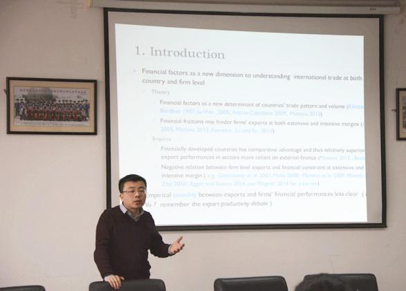 邀请,英国诺丁汉大学于志宏教授在我校仙林校区经济学科楼308会议室作了题为“出口是否影响财政杠杆———以处于汇率波动下的中国企业为例”的讲座。讲座由宣烨院长主持,大乐透