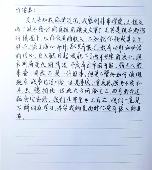 纸短情长,不尽欲言。家书让同学们感受到了红色母亲对大国与小家的爱。真切的爱党、爱国、爱家的深情打动了在场的同学们,国贸2003钟莹感叹道:“都说自古忠孝难两全,其实爱子与爱国也并非容易兼得。红色母亲在一封封家书中,早已成为国与家的精神坐标。”
