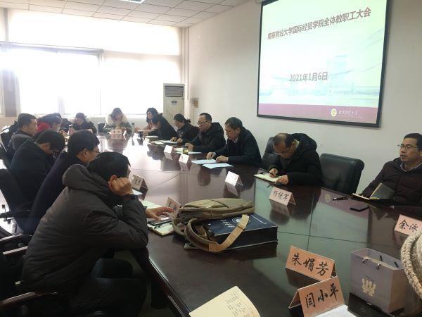 于德经楼308会议室召开了全院教职工大会,学院领导班子和全体教职工参加了会议,会议由党委书记张阳军主持。