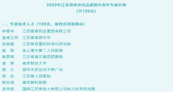 (图为2020年江苏省有突出贡献的中青年专家名单部分截图)