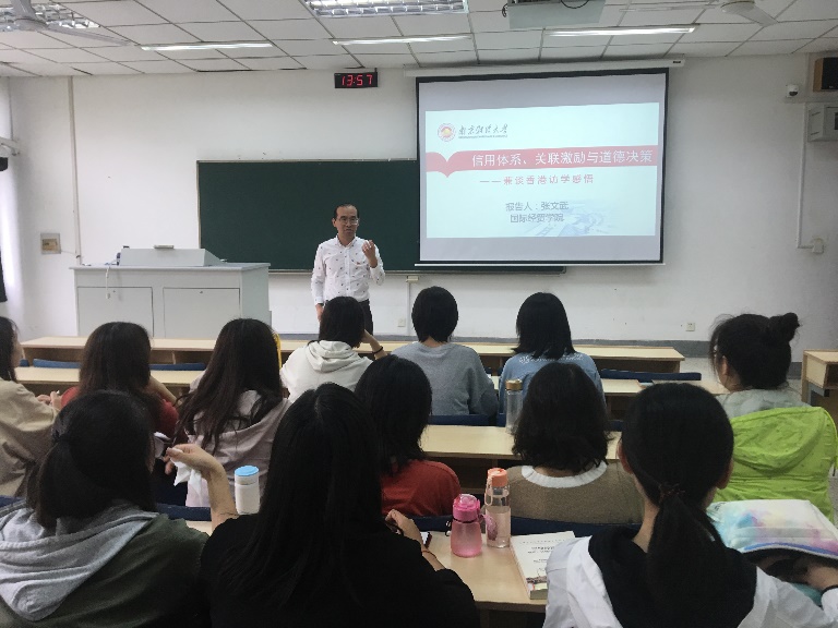 张文武副教授在我校仙林校区Z1-202教室作了题为“信用体系、关联激励与道德决策——兼谈香港访学感悟”的讲座。大乐透