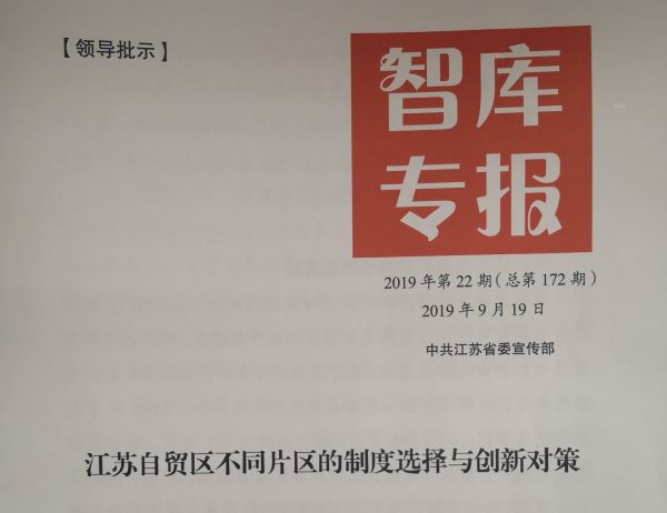 近日,我校智库决策咨询成果《江苏自贸区不同片区的制度选择与创新对策》被省委宣传部《智库专报》录用。该报告由江苏省重点培育智库、现代服务业智库研究员张为付、胡雅蓓完成,刊发于2019年第22期,并上报至有关领导参阅。