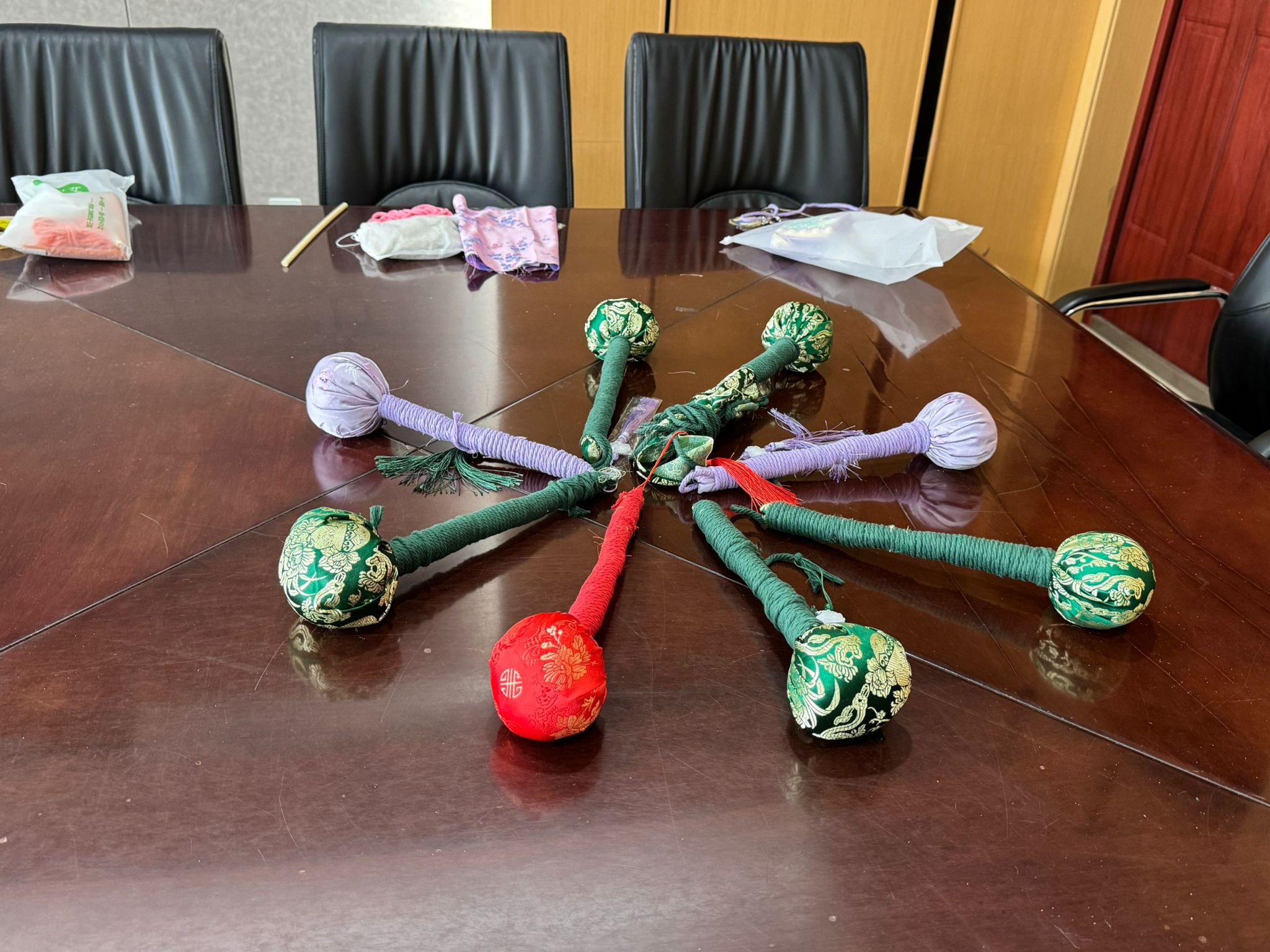 活动现场,艾草飘香,气氛温馨。老师们跟着视频讲解一遍遍摸索艾草锤的制作步骤,大家相互交流,互相帮助,从艾草的整理、香料的填充,到棉布的包裹、麻绳的装饰,每一个步骤都认真细致,力求完美。经过一个小时的精心制作,一个个小巧精致的艾草锤逐渐成型。 看着自己亲手制作的艾草锤,老师们脸上洋溢着喜悦和自豪。