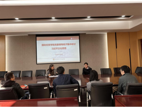 徐圆副院长认为,在新时代推动文化建设的背景下,习近平文化思想为我们提供了深入理解文化与时代、文化与民族、文化与大学教育之间关系的重要理论武器。要把文化视角与国际经贸教育融合,构建文化认同与国际视野双轮驱动以培养学生文化素养,通过讲好中国故事、建设中国话语体系提升学院国际化与文化传播能力。