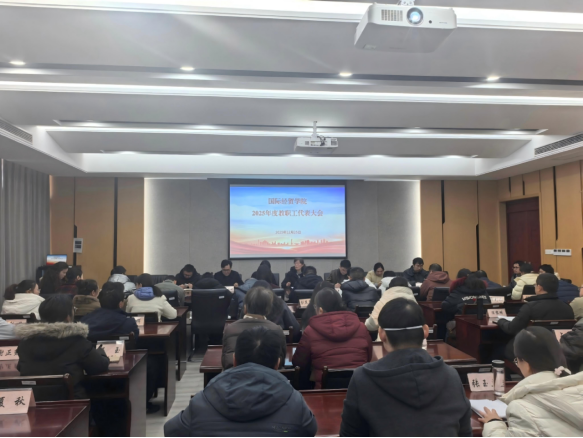会上,余泳泽院长作学院工作报告。他从党建与思政建设、本科人才培养、学科建设与研究生教育等核心工作方面,全面总结学院本年度发展成效与工作现状,并作学院财务工作报告,让全体教职工对学院整体运行情况有了全面清晰的了解。随后,学院分工会主席张朋朋依次作2024年度提案办理及2025年度提案征集情况报告、2025年分工会工作总结报告,使教职工对学院提案落实及工会工作开展情况有了深入了解。
