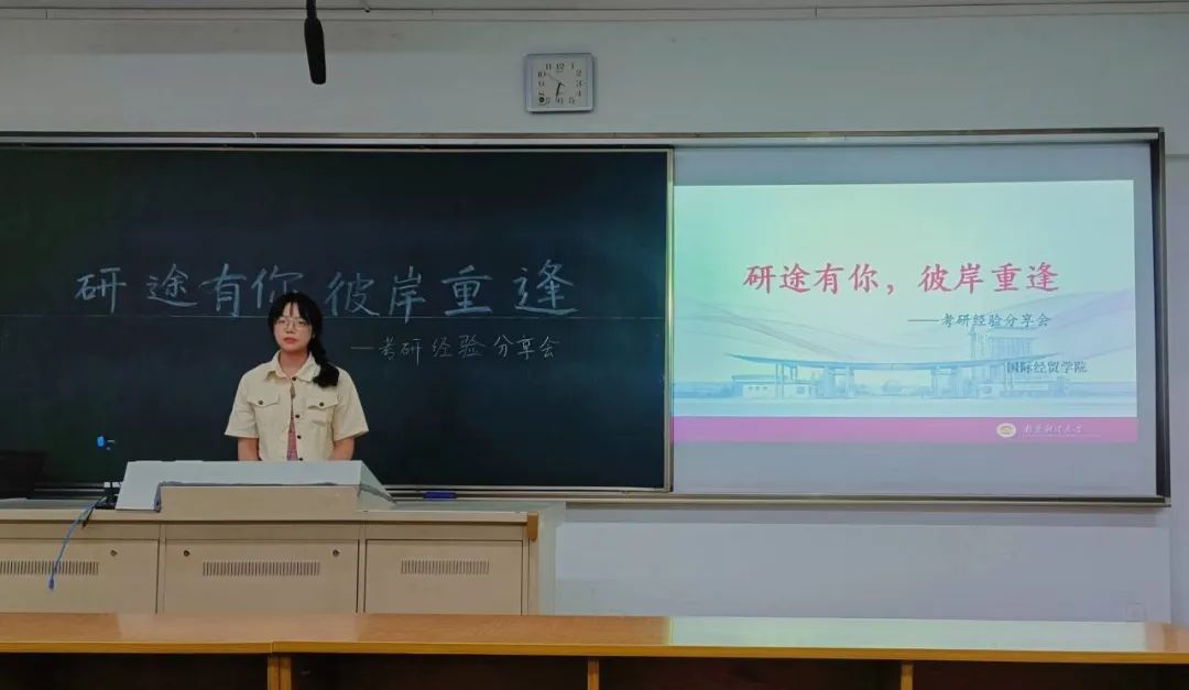 在博文楼205成功举办“‘研’途有你,彼岸重逢”考研经验分享会。本次活动邀请到三位考研成功上岸的同学进行分享,分别是成功上岸北京交通大学产业经济学专业的国贸1902郭慧,上海财经大学商务专硕的国实1901李勇,南京农业大学国际商务专业的国实1901张友盟。