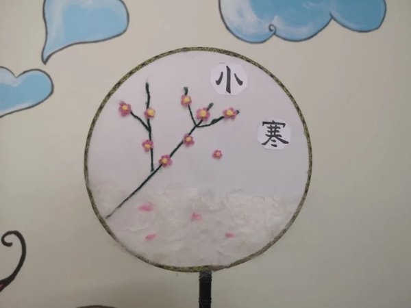 在唱完歌之后,志愿者和学员们开始了团扇贴画的制作。将毛线剪成长短不一的部分贴在团扇上当作树枝,再将做好的一些小花贴在树枝上,一枝梅花便做好了,最后再把一些剪碎的白线贴在团扇下方当作雪地,志愿者刘婧和学员一起制作好了“小寒”的团扇,刘婧表示自己本来想让学员做树枝,自己做难制作的那些小花,但是学员说自己也想尝试一下,便和自己一起做了起来,虽然刚开始做的第一朵并不好看,但是学员很认真地跟着做,做的也越来越好。随着时间的不断流逝,学员们接连做好了自己的团扇贴画,当一位学员被问到为什么要做立夏的团扇时,学员高兴地说道:“因为我很喜欢荷花,听到立夏我就能想到荷花,志愿者老师还教了我‘小荷才露尖尖角,早有蜻蜓立上头’这句诗呢!”在活动的最后,志愿者们与拿着自己团扇的博爱之家学员们一起拍摄了合照。