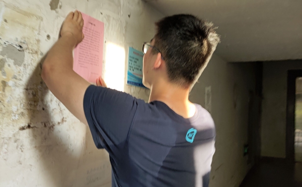 团队也询问了社区的疫情防控现状和规划,刘女士表示,社区目前基本恢复正常,恢复了通行和保障,并适当放松了管理。目前,社区会继续开展防控宣传,对外卖、快递人员进行出入登记,并推荐居民佩戴口罩,避免聚集性出行。刘女士认为在今后的社区服务中应当未雨绸缪,更加注重社区应急保障,考虑以采取定期举办社区活动,增加宣传等方式增加社区工作者在小区居民中的存在感,便于特殊情况下能够迅速联络。此外,她对于目前网络上所说的后疫情时代的说法表示不认同,而是更倾向于疫情防控常态化阶段的说法。社区防控应当是一个长期、需要多方配合才能解决的问题。采访后,团队成员得知社区正准备更换防控宣传单,宣传防疫抗疫相关知识。团队随后决定与社区工作人员一同张贴宣传单,并沿途参观了社区附近的出入口,健身场地的管理。
