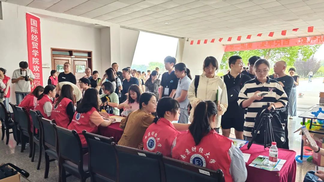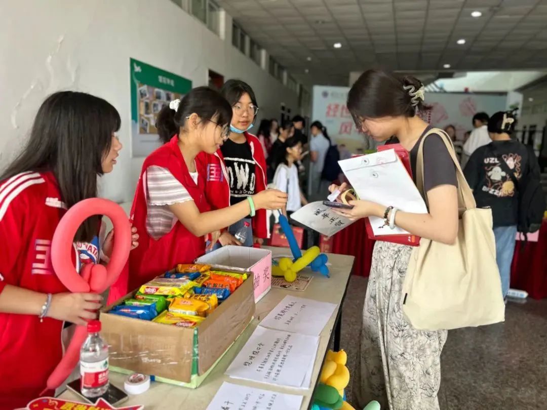 新生便被德经楼一楼大厅内学生会成员精心设计的“经世济国,风华正‘贸’”打卡墙所吸引。打卡墙上展示的,正是此前由大乐透