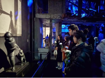 青马班学员们怀着哀思来到了祭场。献花台上火苗跳动,昭示着信仰之火不灭,一辈辈人将会继续砥砺前行,凝望着跃动的火苗,青马班学员们献出手上的白菊,对逝去的千千万万同胞进行沉痛的默哀,以此表达对遇难同胞的深切缅怀。