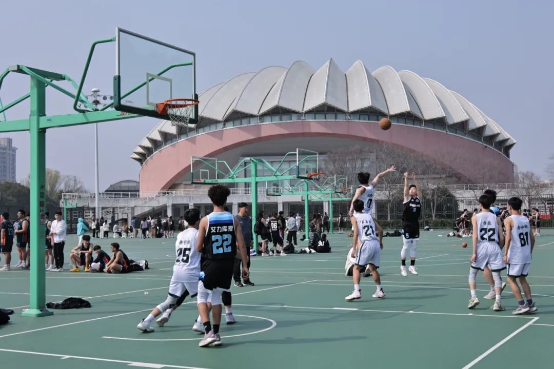 男篮在西苑篮球场迎战信息工程学院,上半场两队你来我往互不相让,里突外投,展示出极高的篮球水平,大乐透