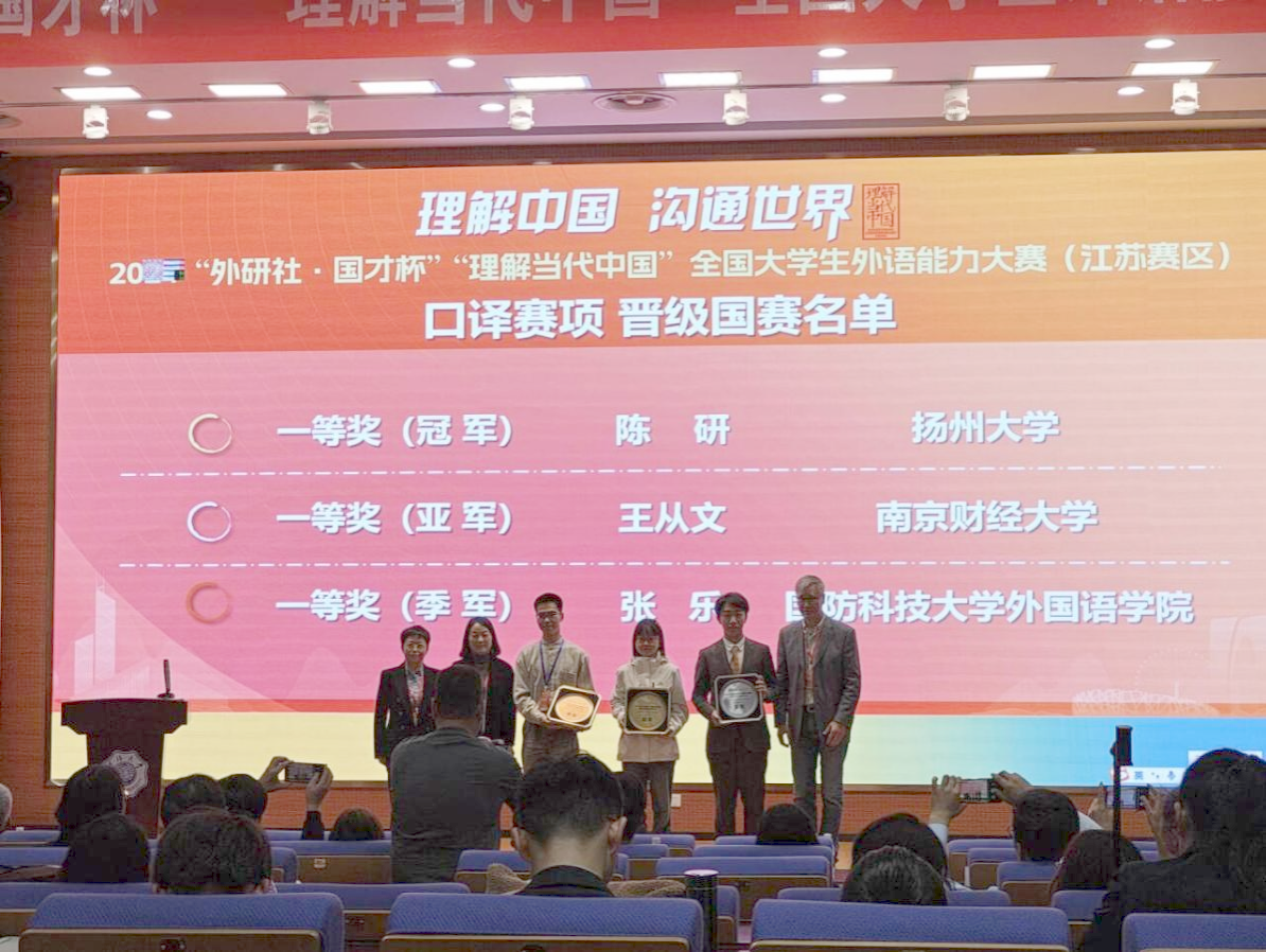 10月25日至11月3日,2024“外研社·国才杯”“理解当代中国”全国大学生外语能力大赛江苏赛区英语组比赛分别在河海大学、南京农业大学和南京林业大学举办。经过激烈角逐,我校获省赛一等奖2项并晋级国赛、二等奖1项、三等奖8项。