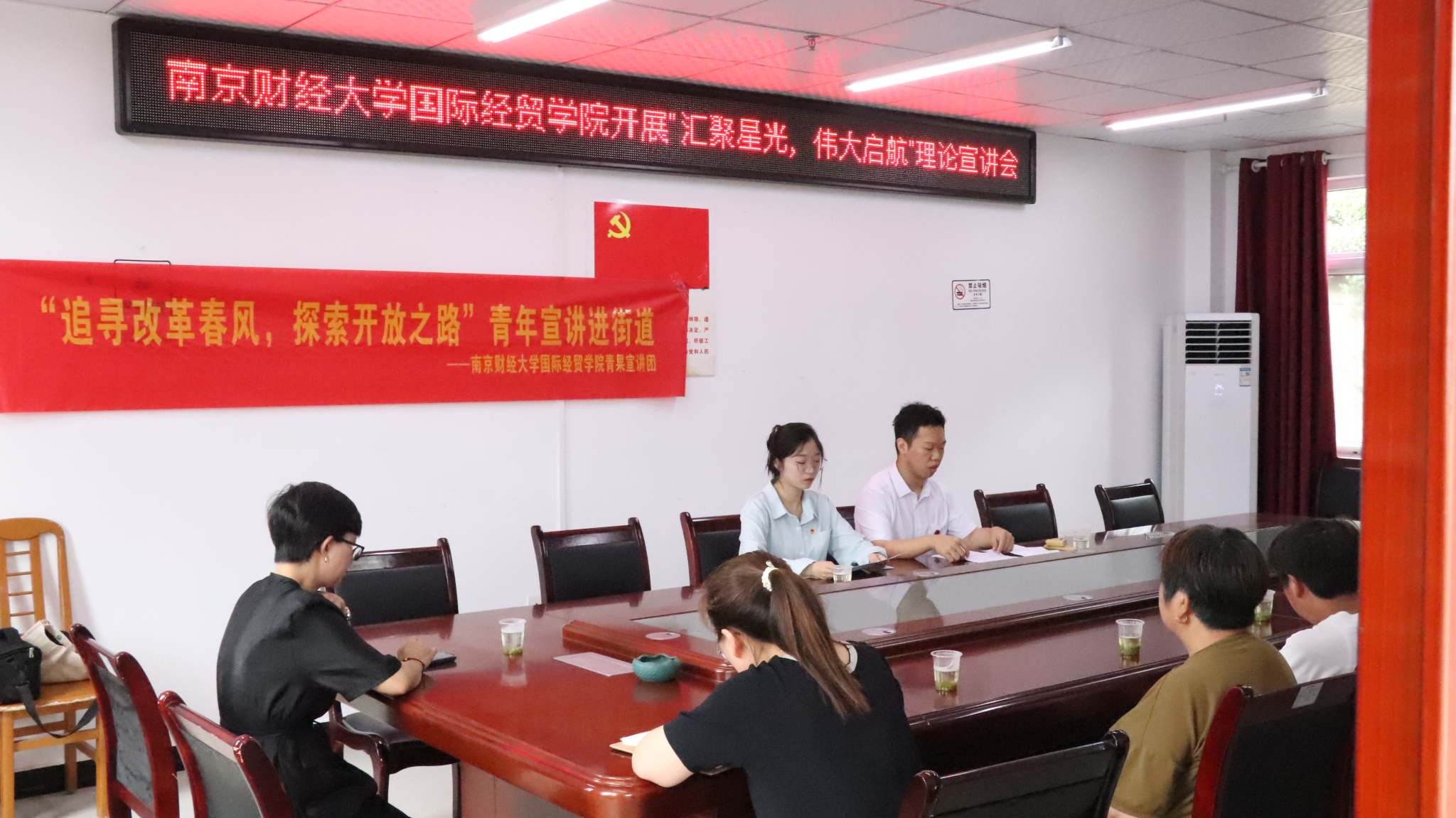 在实地考察的基础上,“青果”宣讲团成员在花枝山村党员群众服务中心进行了一场深刻的宣讲活动。宣讲团成员罗光照和何京豫通过讲述小岗生产队副队长严宏昌、西藏阿里地委书记孔繁森两位基层干部的故事,从不同角度向村民们展示了改革开放的伟大征程,学习改革开放精神。罗光照同学还表演了一段名为《小罗今天再登台》的相声,生动形象地向村民展示改革开放以来特别是党的十八大以来人民群众的成就与荣誉。