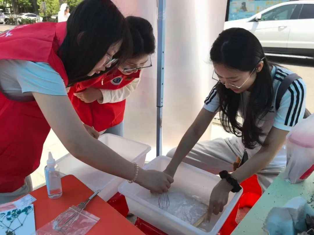 青志部于4月18日在中苑食堂门口开展了“共种地球梦,共享生态美”主题志愿活动。此次活动设置了古法造纸、咖啡渣种植、创意彩绘三个体验项目,分别聚焦“再生利用”、“变废为宝”“减塑生活”三个环保维度,以可感知、可操作的实践形式,打破传统生态文明教育的说教模式,让环保理念真正融入同学们的生活。