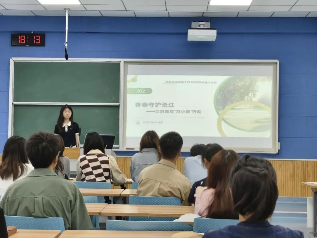 贸经2401团支部许佳彤聚焦生态保护,以江苏 “河小青” 行动为例,用年均 1.6 万次净滩、捡拾 411 吨垃圾,及 2000 余次水质监测、整改 13 处污染源等数据,展现 “清理 — 监测 — 造林” 的立体化护江模式。她强调 “河小青” 作为河长助手的定位,通过 “脚步丈量 + 科技赋能” 的实践,让 “两山” 理念转化为青年可参与的具体行动,彰显青年在长江生态守护中的担当。