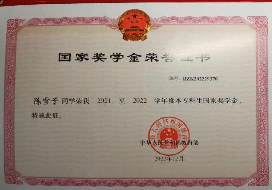 获得国家奖学金、江苏省三好学生、连云港市优秀学子等多项荣誉