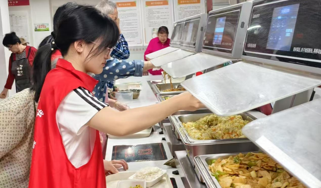 “一饭一心志愿队”走进南京悦心居家养老服务中心,走到社区老人的身边,意在把爱心传递到社区,将温情填满小小的食堂。