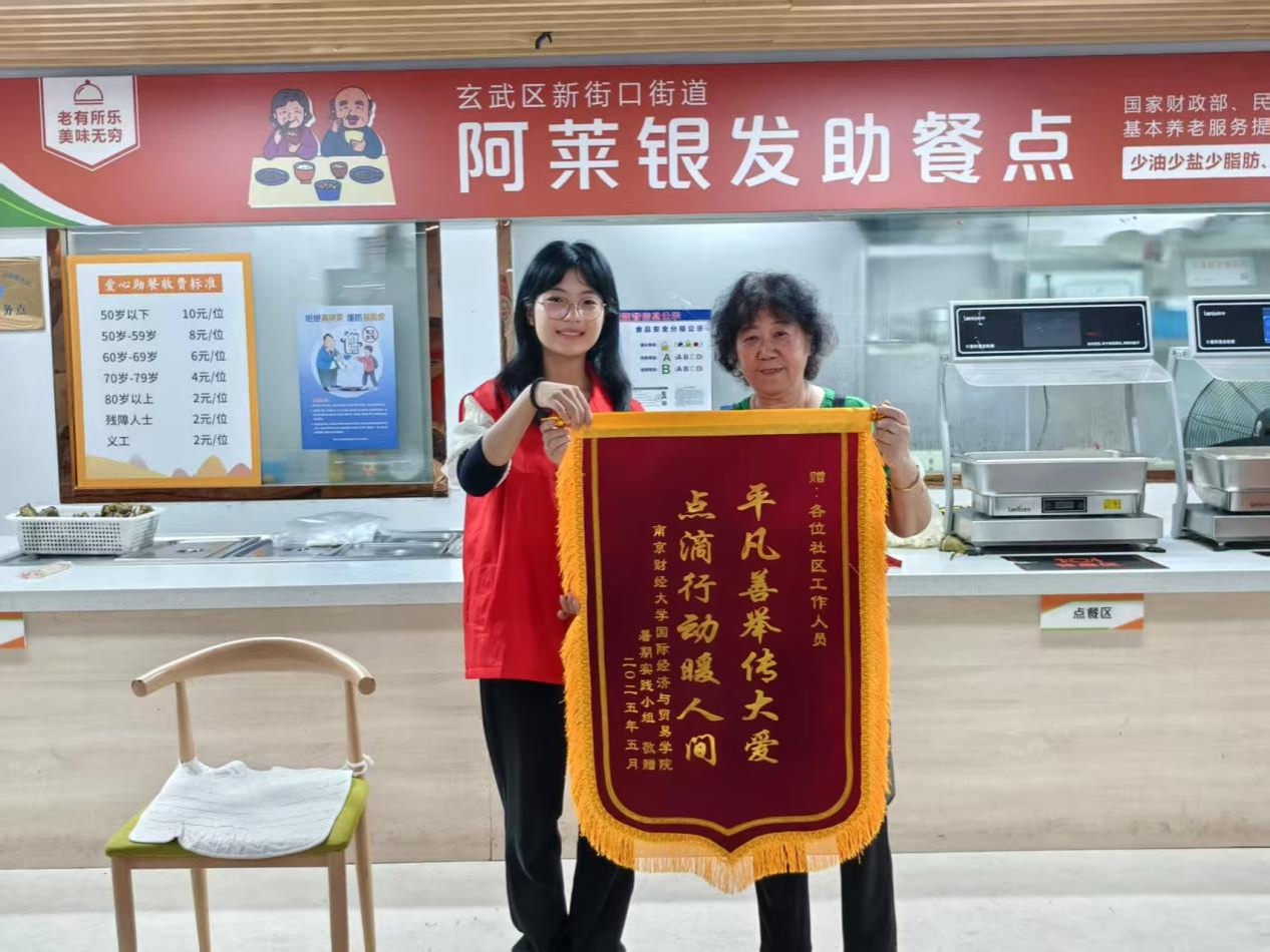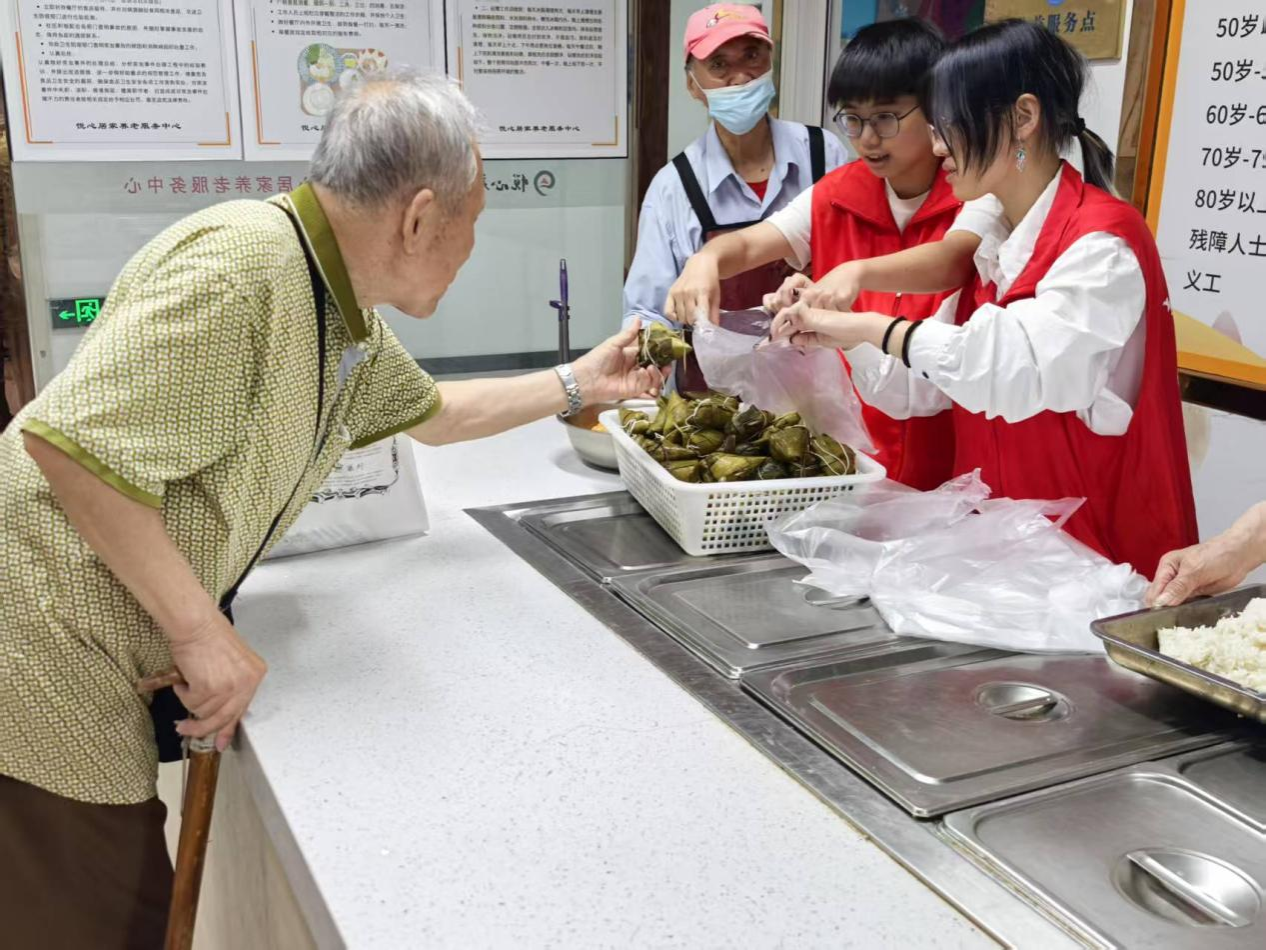 从晨朝到日中,从学校到食堂,从朗朗书卷气到人间烟火气。在此次社区服务活动里,“一饭一心志愿队”的队员走出象牙塔,放下电子产品,深入小社区,融入社会大家庭;在为社区老人提供服务的同时,找到了近在咫尺的“附近”,建立起和“周围”的联系;在志愿服务中付出劳动,在社会服务中收获价值,感悟到自己乃至青年团体同老人、同社区、同社会双向奔赴的温暖。