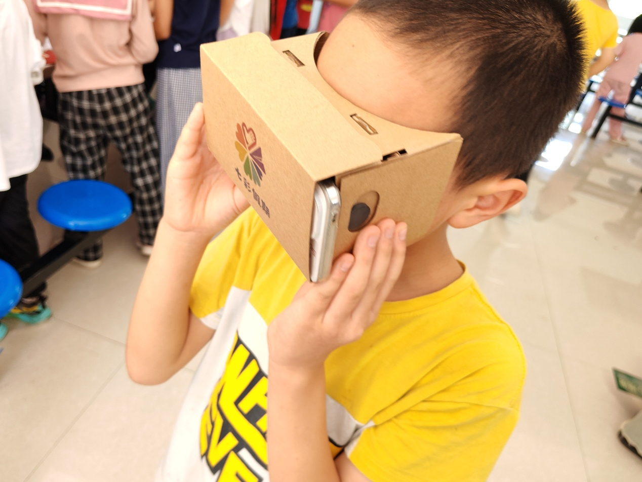 VR眼镜里,通过简易镜片宇宙星空、深海探险的3D场景扑面而来,孩子们“走进”虚拟的世界,感受着别样的风景;小吸管搭建挑战中,志愿者引导孩子们动手创作,现场氛围有趣而活跃,孩子们个个发挥奇思妙想,制作出爱心,摩天大楼等创意拼接作品。