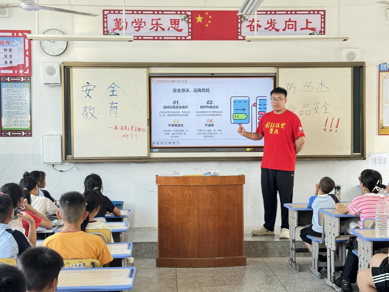 下午的课程聚焦安全教育。支教队员为孩子们带来了“防溺水与食品安全”主题班会,结合真实案例讲解了私自下水的风险、遇险自救互救方法及饮食卫生要点,强调安全第一。随后,音乐课上,支教队员教授励志歌曲《左手右手》,耐心教唱并引导孩子们体会歌词中团结互助、勇敢向前的精神。