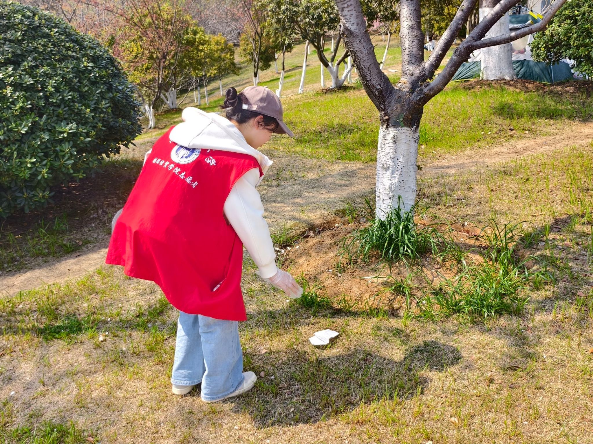 学院组织师生志愿者前往栖霞区羊山公园开启 “春晖拾绿· 清明行” 实践,面对春日游人如织的草坪、步道与树丛散落的垃圾,大家佩戴手套、手持清洁工具分工协作,弯腰捡拾分类收纳,从赏景游客转变为环境守护者,以实际行动诠释主动担当的志愿服务精神,同时践行文明出游理念。净山结束后,师生们漫步园中,定格迎春花、樱花、木绣球与三色堇交织的春日美景,在感知自然节令的同时,也以 “风把樱花吹成雪,我把春天折进纸里” 的心境,体会清明承载的对生命、自然与情感的深沉思考。