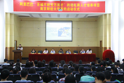 签约启动仪式在我校仙林校区管理学科楼报告厅举行。副校长邱伟芬、江苏省跨境服务商协会会长于斌、阿里集团区域主管唐璐女士及相关负责人出席启动仪式。签约仪式由大乐透