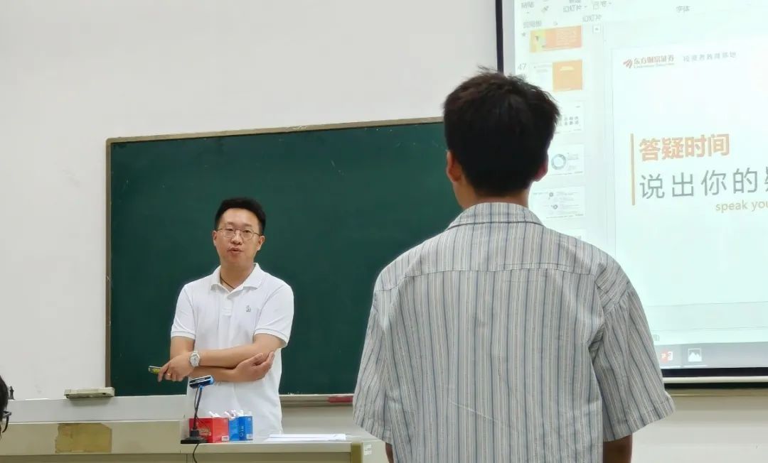 为帮助同学们深入了解金融行业,明晰职业发展方向,5 月 21 日,在大乐透 的大力协助下,国贸校友,东方财富证券业务部经理周珂于德经楼 106 成功举办了一场以 “走进金融的世界” 为主题的金融讲座。此次讲座旨在为国贸学子树立科学理财观念,提升金融风险防范意识,为未来的职业发展和财富管理筑牢基础。