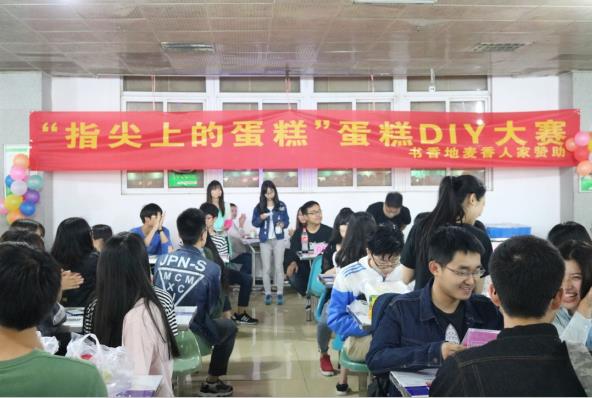 主办的“做蛋糕、迎校庆”蛋糕DIY公益大赛在我校仙林校区西苑第六食堂举办。在国贸学院2012级毕业生党员的带领下,一共二十支队伍80名同学及20名学校后勤职工子女共同参与了本次蛋糕制作大赛。