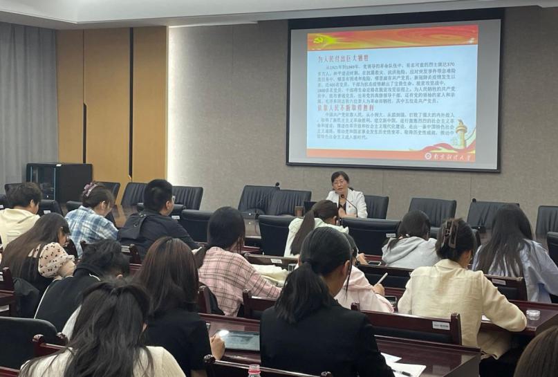 院党委书记、分党校校长周亚芳在仙林校区德经楼308会议室,以“学思想明方向,重践行书华章”为题给学院第19期“党的发展对象”培训班的学员们和本科生第一党支部党员上了一堂专题党课。