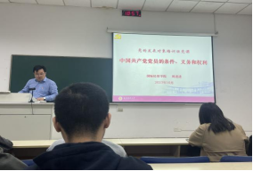 党委副书记周进进以“明确党员的条件、义务和权利”和“以实际行动争取做一名合格的共产党员”为主题,在德经楼102教室为2023年下半年“党的发展对象”培训班的学员们上专题党课。