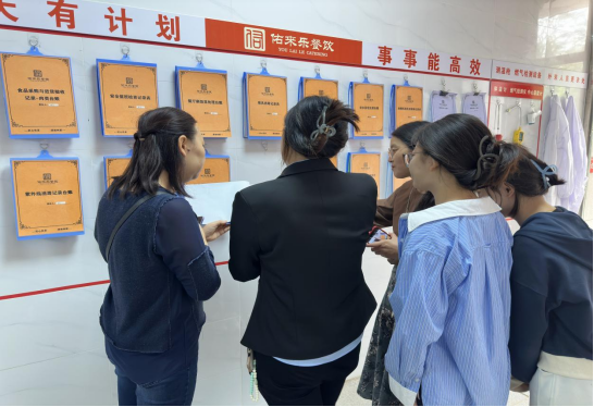 检查过程中,餐厅经理积极配合,认真介绍食堂的卫生情况,带领工作小组检查食堂的采购食材、冷库环境、后厨环境等,工作小组仔细查验食堂消毒记录、食品采购清单、食材处理账单等台账,并认真检查了后厨的卫生情况,与餐厅工作人员进行认真交流,肯定了食堂在食品安全、规范管理等方面取得的成绩,也对不足之处出相关建议。