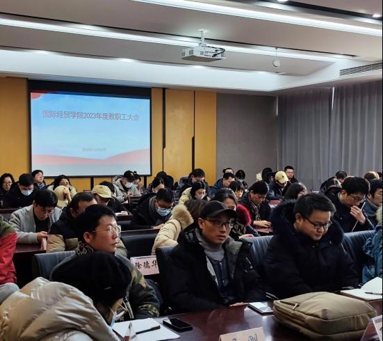 会议听取了余泳泽院长所作的《大乐透 2023年度工作报告》、《大乐透 2023年度财务工作报告》,徐圆副院长就《大乐透 奖励性绩效工资分配方案(试行)》所做的说明,院工会主席张朋朋所做的《大乐透 2023年度提案征集情况说明》和《大乐透 2023年度分工会工作报告》。在学院奖励性绩效工资分配方案说明环节,全体教职工仔细认真地听取了方案,进行了充分、热烈的沟通讨论,充分体现了教职工参政议政的民主权利。
