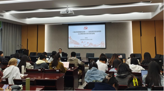 分党校于2024年4月19日邀请马克思主义学院教研室主任杨荣刚在仙林校区德经楼308会议室为党的发展对象作以“一场没有硝烟的战争——谈党员学生如何树立正确的意识形态安全观”为主题的专题讲座。讲座内容涵盖“认识意识形态工作的极端重要性”“学生意识形态工作面临的形势和挑战”“如何提升大学生意识形态安全意识”三部分。