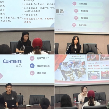 薪火相传,籽籽同心。商务2202班古力孜巴以经验为重点,从大学生活篇、专业学习篇、课外实践篇与拒绝内耗篇四个方面做了详细分享。作为新一代的青年人,她身体力行着青年人的朝气与明媚——于社团中,意气风发,荣获“校园十佳歌手”称号;于学业上,严于律己、品学兼优,在大学校园中活出了她的精彩,也激励着在场同学,敢闯敢当,勇于拼搏。