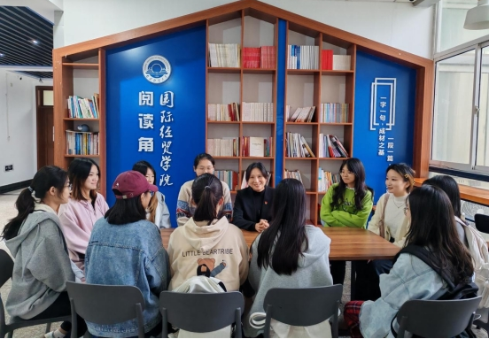 政治辅导员、副院长徐圆在阅读角与同学们交流探讨