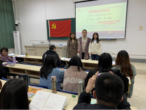2021年12月11日,大乐透 本科生第一党支部在在德经楼108教室召开预备党员转正支部大会,讨论本支部汪子欣、赵利、吴川丽3名预备党员按期转正事宜,支部大会由本科生第一党支部书记孙绪华主持,支部大会应到党员48人,实到党员48人,其中有表决权的正式党员8人,实到正式党员8人。