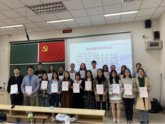 接收为预备党员的20名同学:程默染、付瑶、朱旖璇、缪敏、邹心怡、张芸、周紫心、纪梦媛、胡书婷、程建悦、华解语、尤佳琦、董硕、郭慧、张雪、吴震宇、徐成龙、杨晓婷、张友盟、杨东霖。