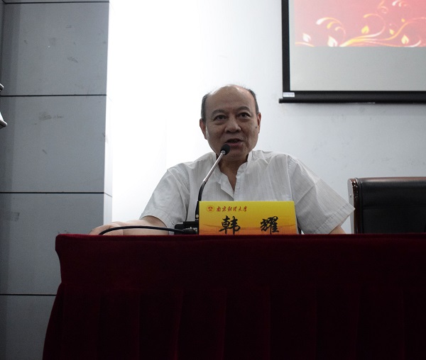 讲话伊始,韩耀教授针对当前大学生缺失的优良品质和浮躁大学风气,提出自己对同学们的要求:有主见,有长远的眼光,有强大的毅力。他强调,有主见就是不从众,不随大流。同时要有长远的眼光,因为当意识到某件事情有用的时候已经来不及了;还要有毅力,如果同学们能默默坚持,终会走向成功。