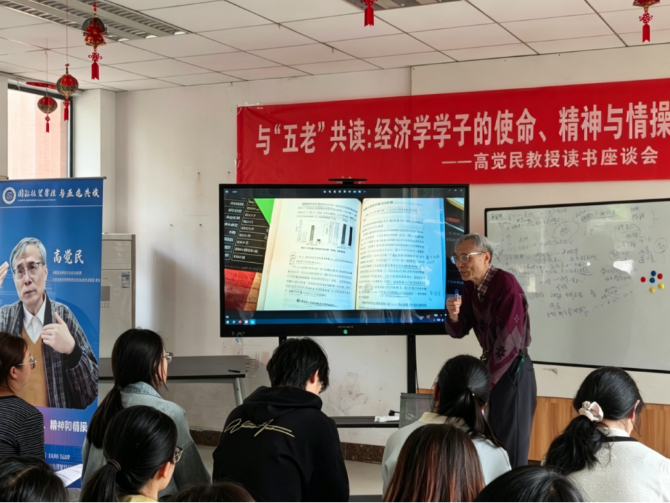 在东苑宿管站举办国家安全主题读书座谈会。活动特邀退休老教授高觉民教授领读讲学,围绕《学者的使命》《贫穷的本质》《人间词话》《学会提问》四部经典展开研讨,引导国贸学子在经典中锤炼思辨、坚守初心,以青春之力维护国家安全。