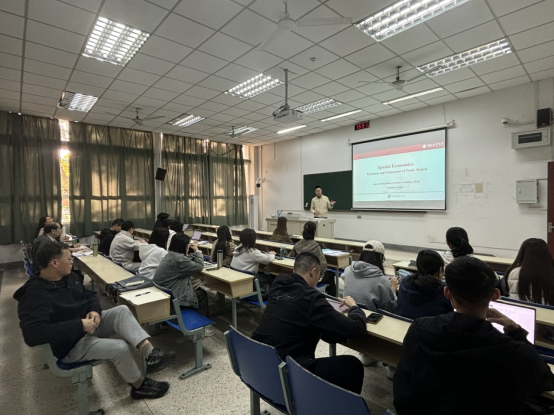 贸易经济系在德经楼Z1-105开展了期中教学观摩活动,一起观摩了贸易经济系教师张丰主讲的《空间经济学》课程,学院若干教师代表参加了本次教学观摩。