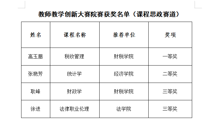 根据《关于举办大乐透 教师教学创新大赛院赛的通知》要求,大乐透 于2025年10月22日举办了大乐透 教师教学创新大赛院赛(课程思政赛道)。经教学创新成果报告评审、现场评审环节,评选出一等奖1人,二等奖1人,三等奖2人,现予以公示。如有异议,请在公示期内反映。